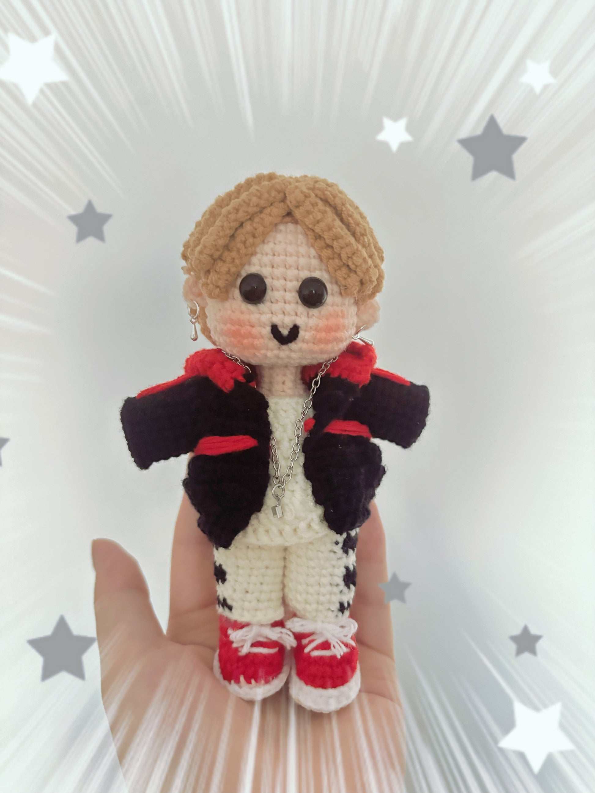 This adorable handmade plush keychain doll is inspired by Jimin’s iconic “Mic Drop” look. Each piece is lovingly crafted by hand, capturing the charisma and confidence of your favorite idol in soft, huggable form.