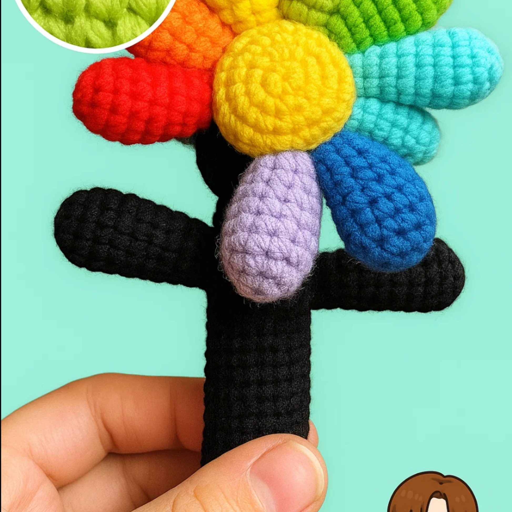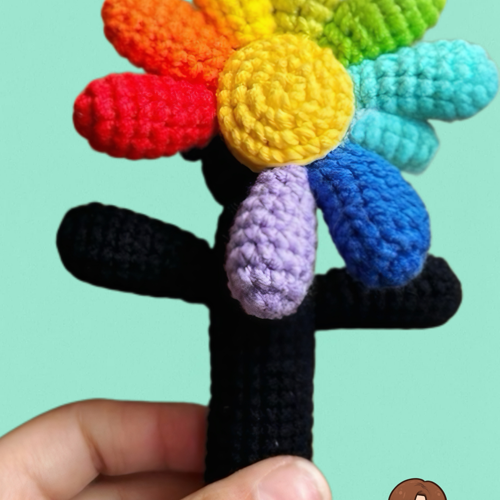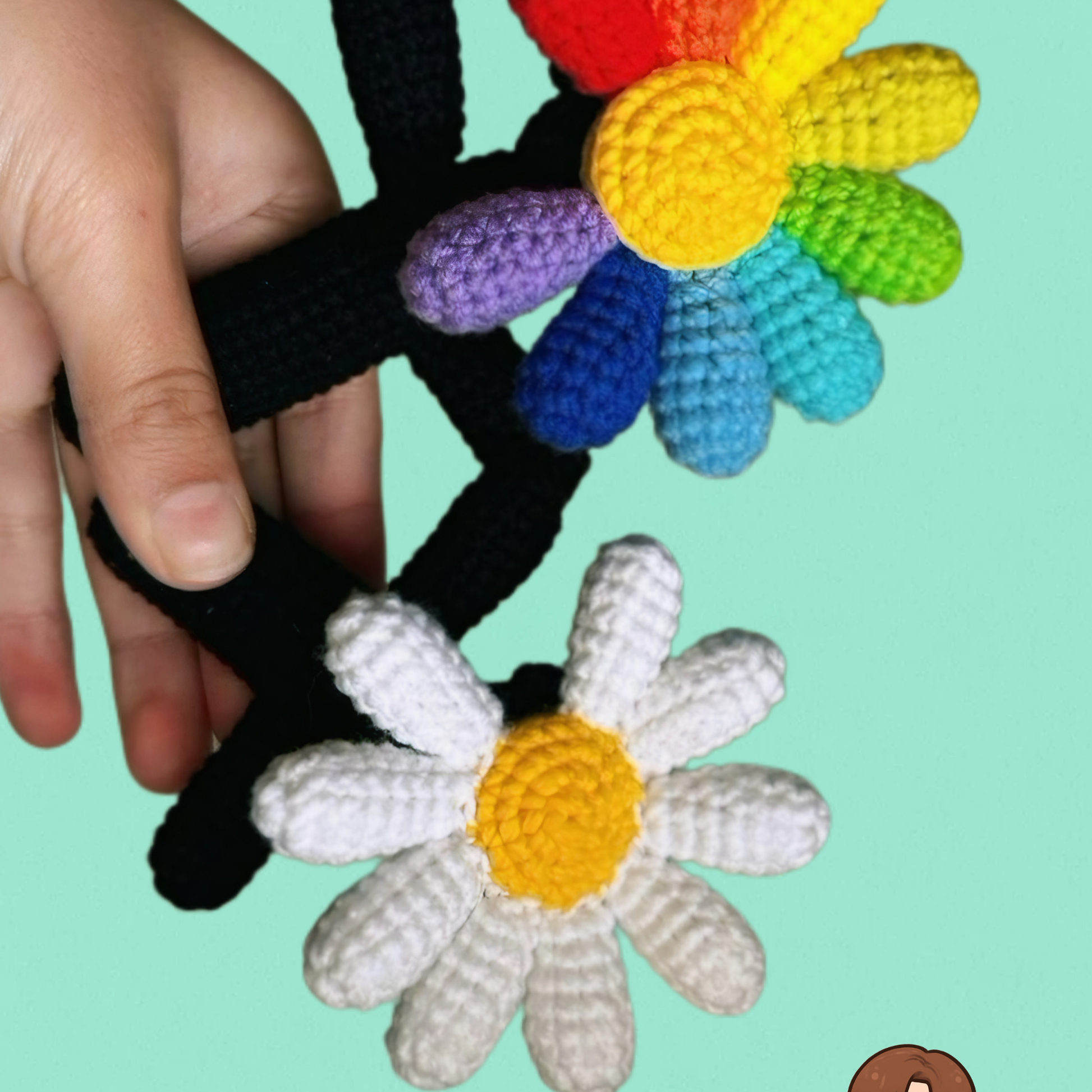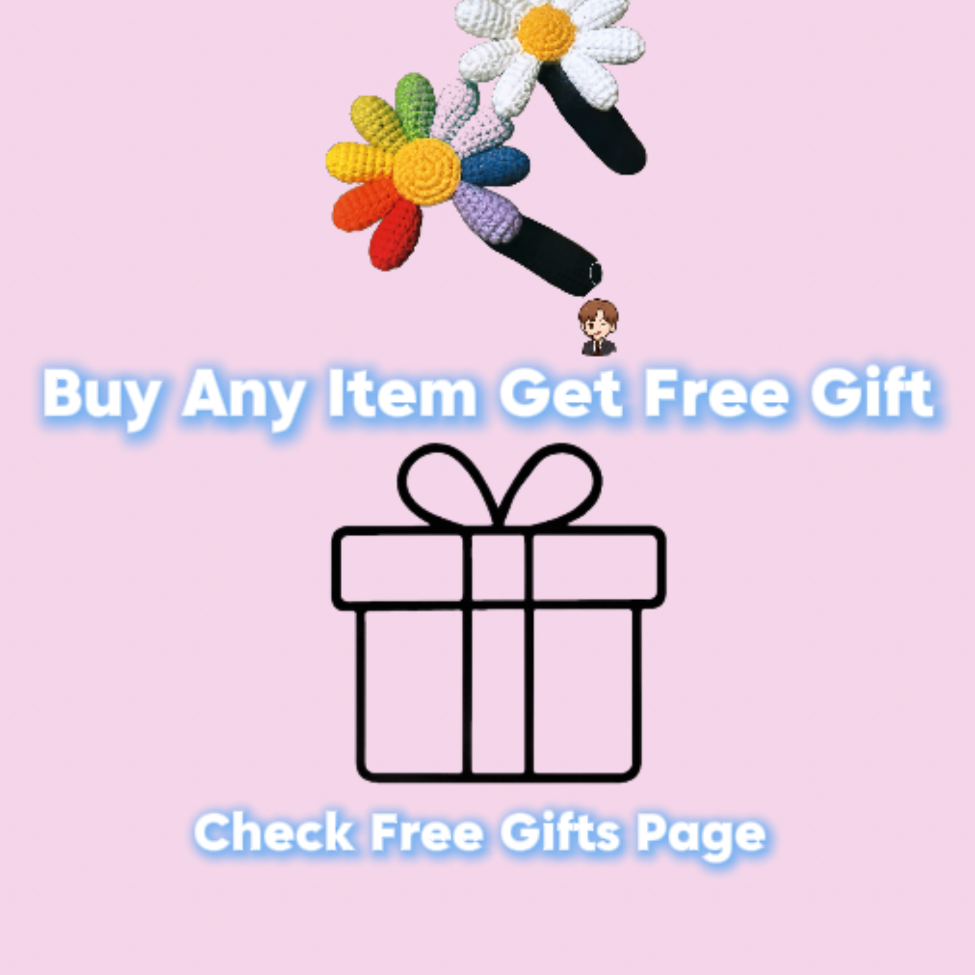 Inspired by G-Dragon’s iconic daisy symbol and rainbow fan bouquet, this handmade crochet keychain captures the romance and strength behind GD’s fan culture. One version features a pure white daisy, simple and serene; the other bursts with rainbow petals, each color representing a piece of you.