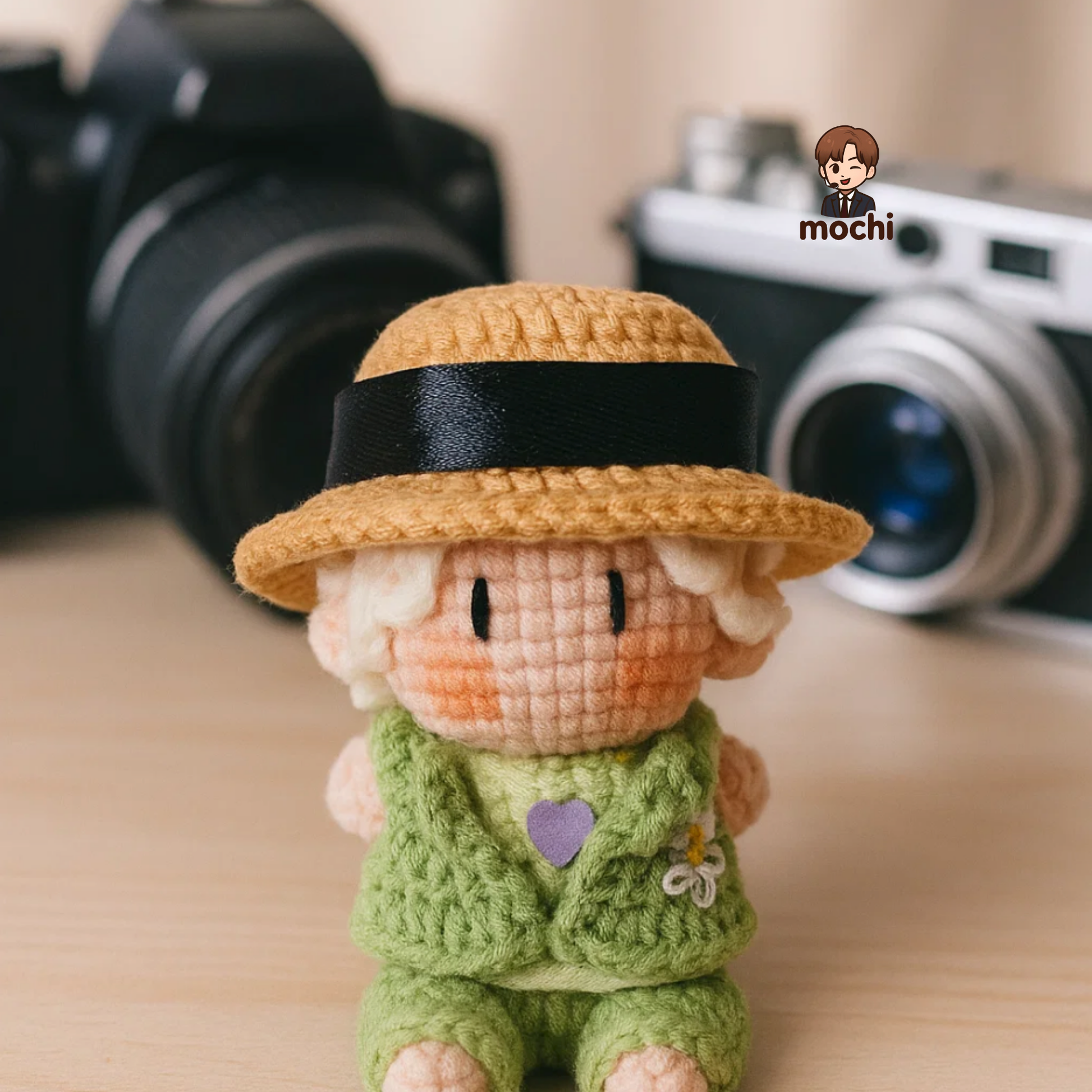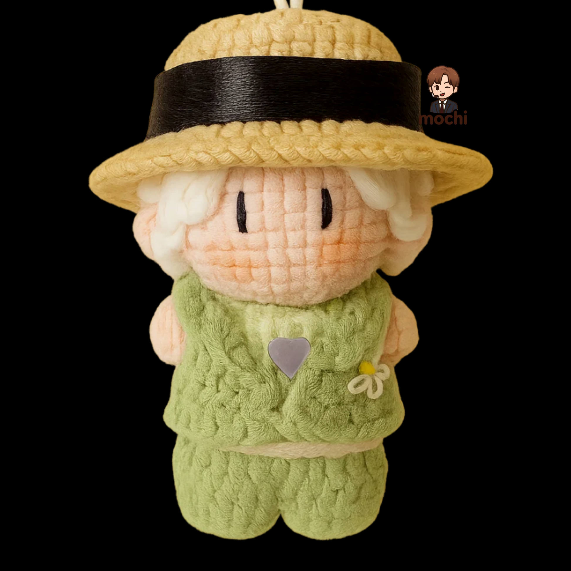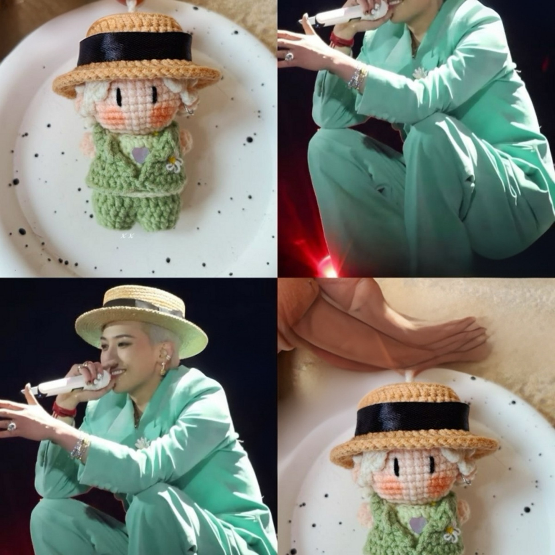 Step into the soft side of fashion with this adorable handmade G-Dragon-inspired crochet keychain doll, dressed in a refreshing matcha green suit that oozes laid-back charm and summer vibes π.